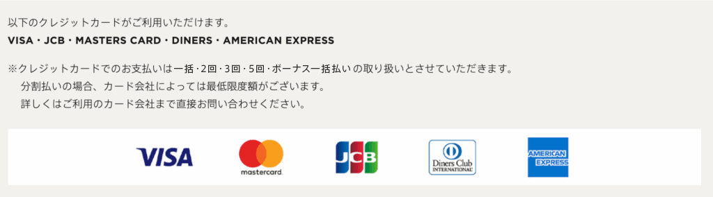 ※ カードの種類によって、一括払い以外は手数料が発生する場合がございますので、各カード会社にお問い合わせください。